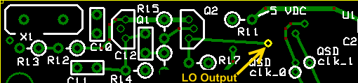 Author measured the dc voltage at R17 using a scope and got ~2.6 Vdc. Per Alan, G4ZFQ, This voltage (at R17) is not critical and can vary a lot, partly depending on the crystal. The important thing is that the LO's RF output is a good healthy signal and is detectable on an external RX (or counter or scope).