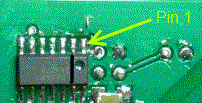 Note: U7 is installed on the board in an "upside down" orientation. That is, the dimple on the case is on the upper right (or the band is to the right) when the IC is properly oriented.